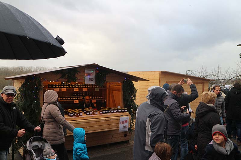 Vergangenes Wochenende konnte man den ersten Porzer Weihnachtsmarkt am Friedrich-Ebert Ufer sowie auf dem Alfred-Moritz Platz besuchen. Trotz des grauen und nassen Wetters waren dort viele Weihnachtsbegeisterte unterwegs. Kein Wunder, denn es gab zahlreiche unterschiedliche Angebote für Groß und Klein: In den kleinen geschmückten Holzhütten konnte man neben leckeren Waffeln, Pommes und Glühwein auch Rezepte, Krippen sowie Selbstgenähtes finden. Aber auch einige Vereine präsentierten sich: Der Verein „Ein Herz für Tiere“ warb beispielsweise mit selbstgemachten Handarbeits-Herzen und die Karnevalsgesellschaft „Fidelen Aujusse“ mit kunstvollen Weihnachtsgestecken.